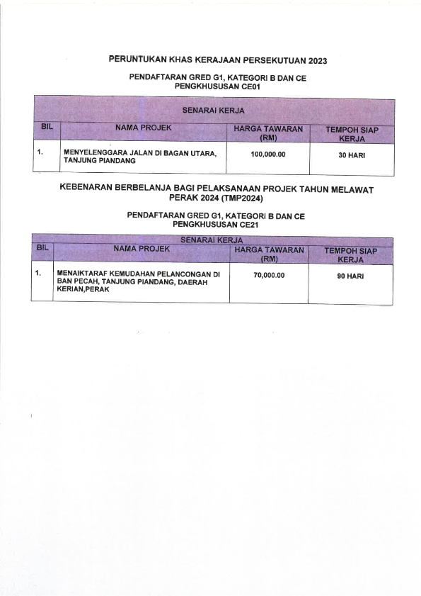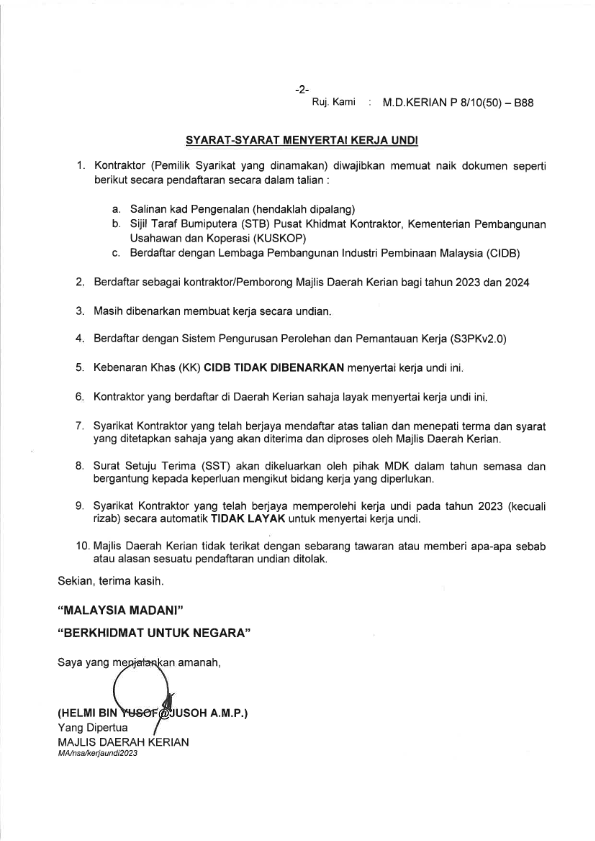 2. Berdaftar Sebagai Kontraktor/Pemborong Majlis Daerah Kerian bagi Tahun 2023 dan 2024
