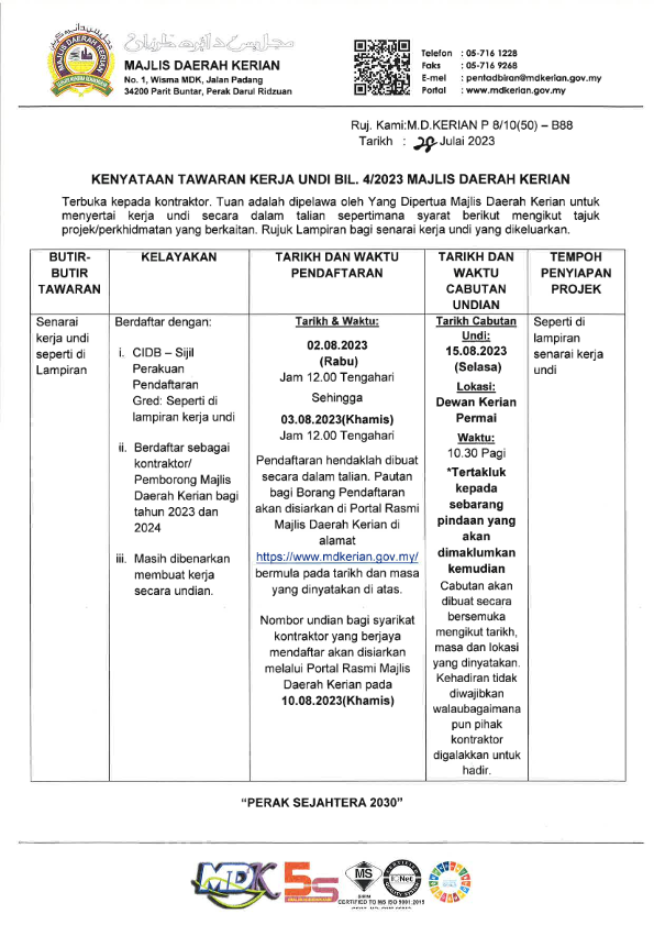 Maklumat Lanjut : https://www.mdkerian.gov.my/index.php/informasi/tender-sebut-harga