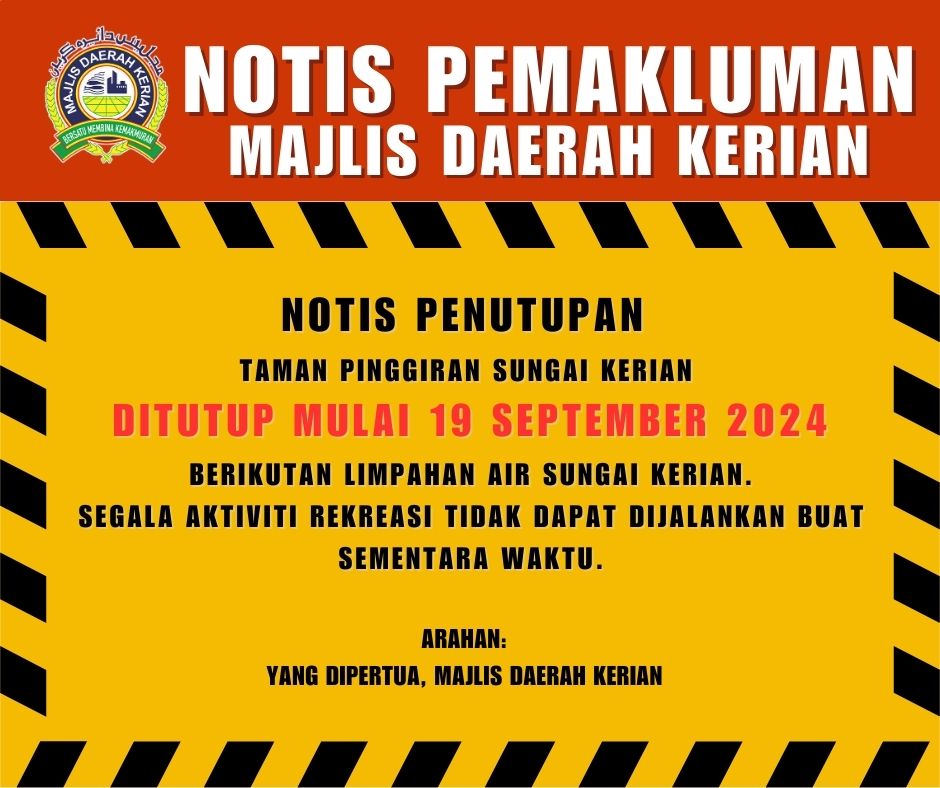 NOTIS PENUTUPAN TAMAN PINGGIRAN SUNGAI KERIAN