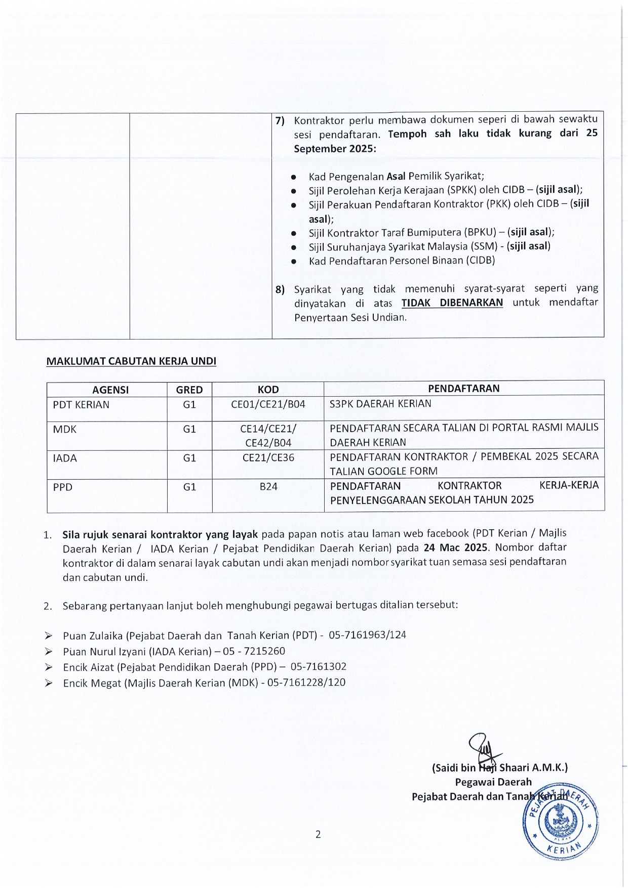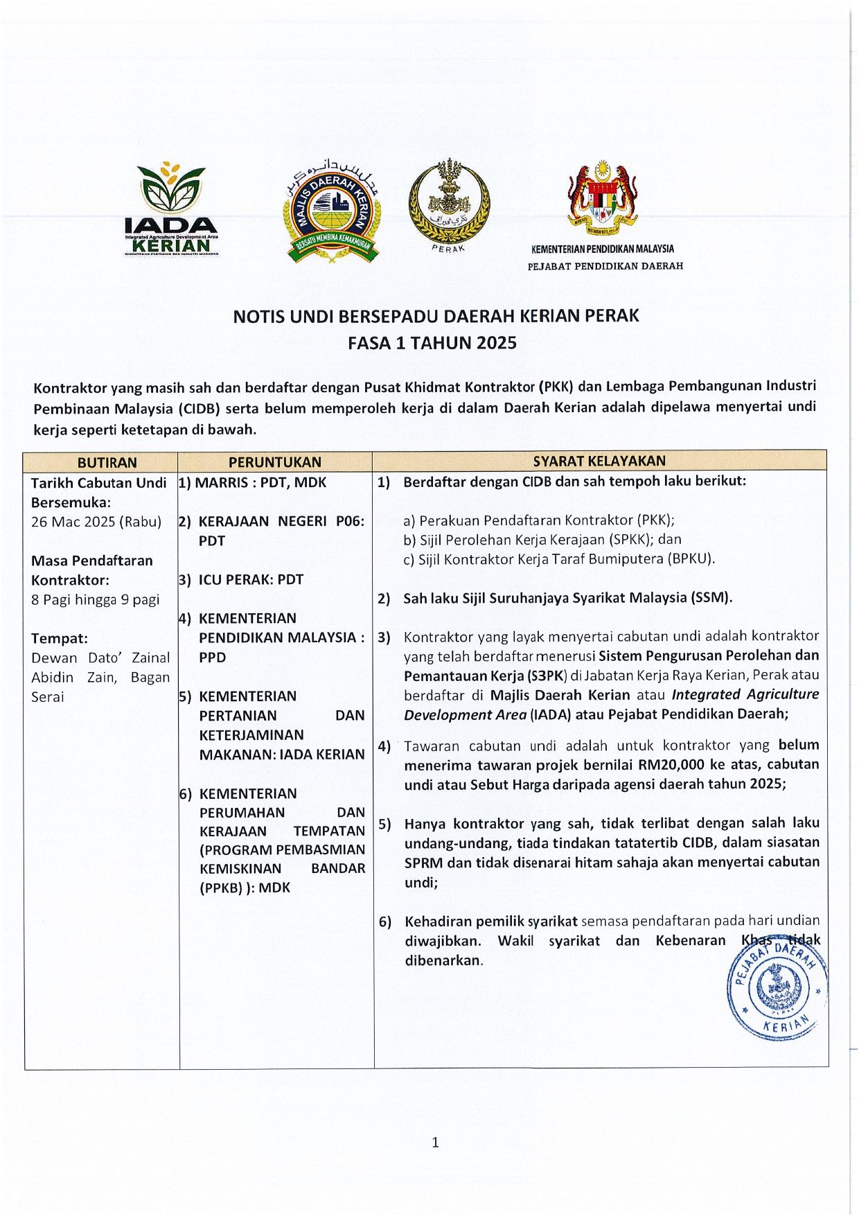 NOTIS UNDI BERSEPADU DAERAH KERIAN PERAK FASA 1 TAHUN 2025