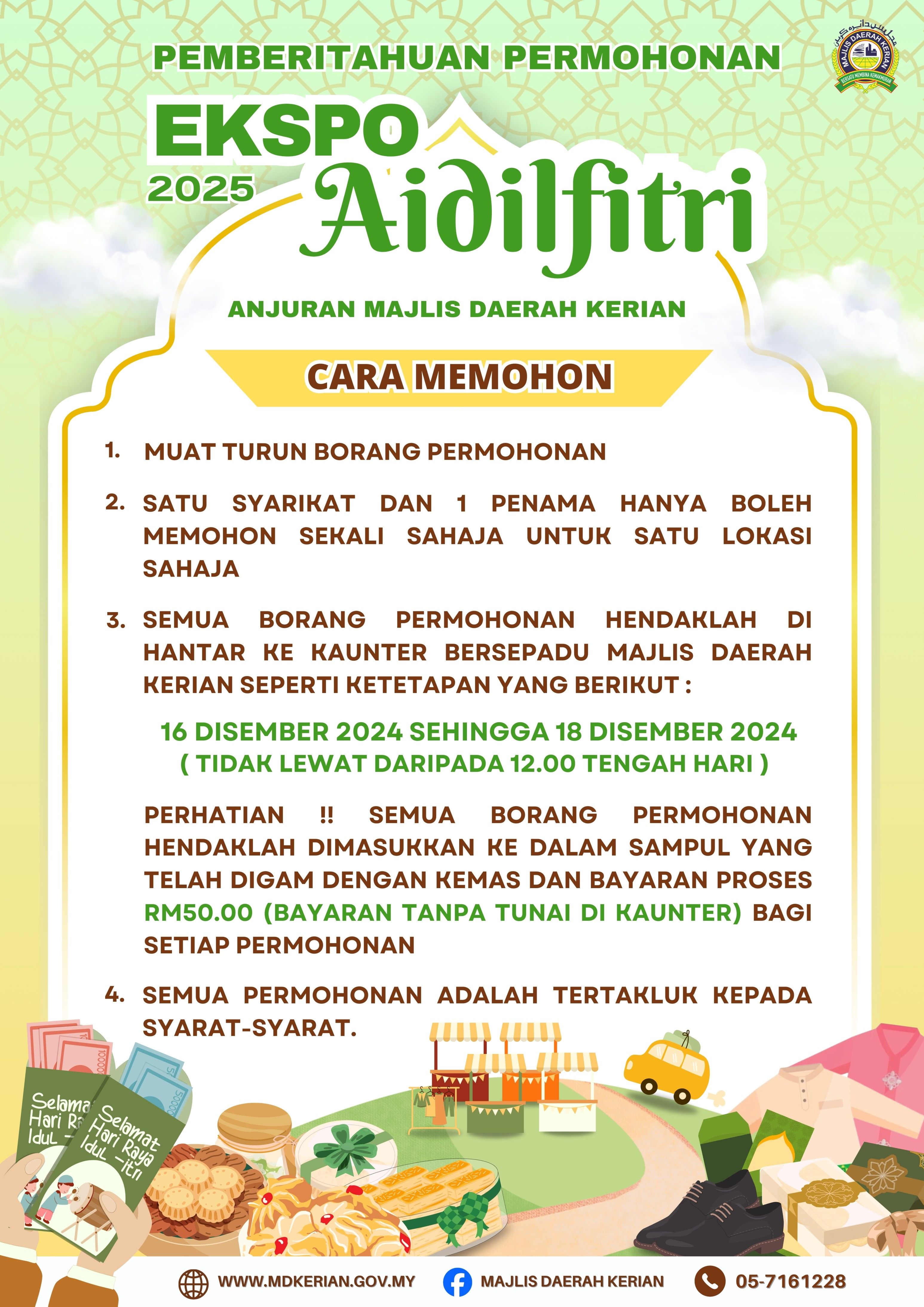 PEMBERITAHUAN PERMOHONAN EKSPO AIDILFITRI 2025 ANJURAN MAJLIS DAERAH KERIAN