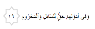 “Dan pada harta-harta mereka, (ada pula bahagian yang mereka tentukan menjadi) hak untuk orang miskin yang meminta dan orang miskin yang menahan diri (daripada meminta).”