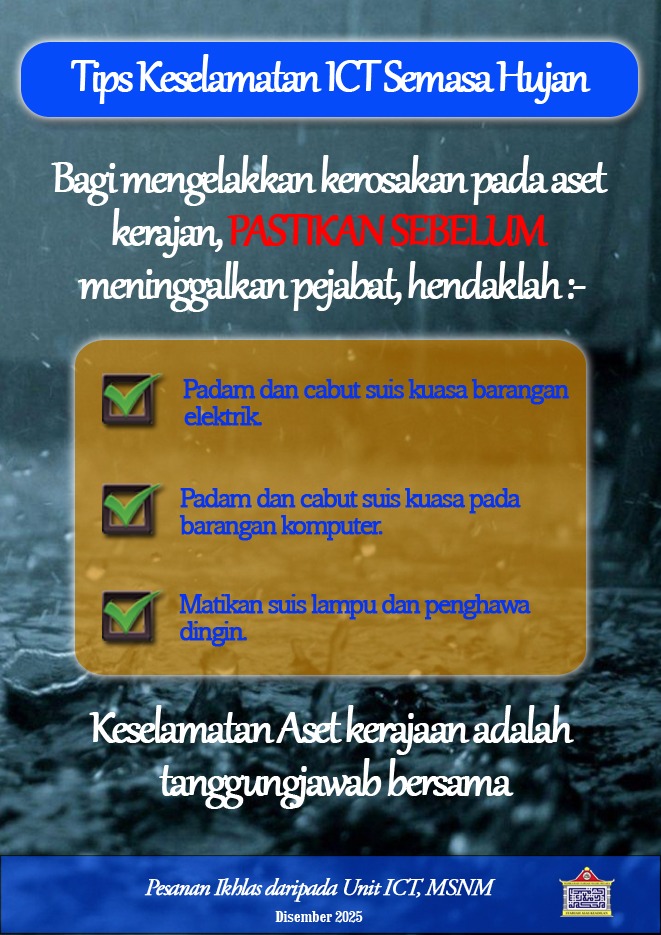 Disember 2025 : Tips Keselamatan ICT ketika Hujan